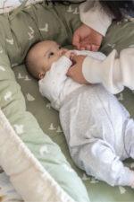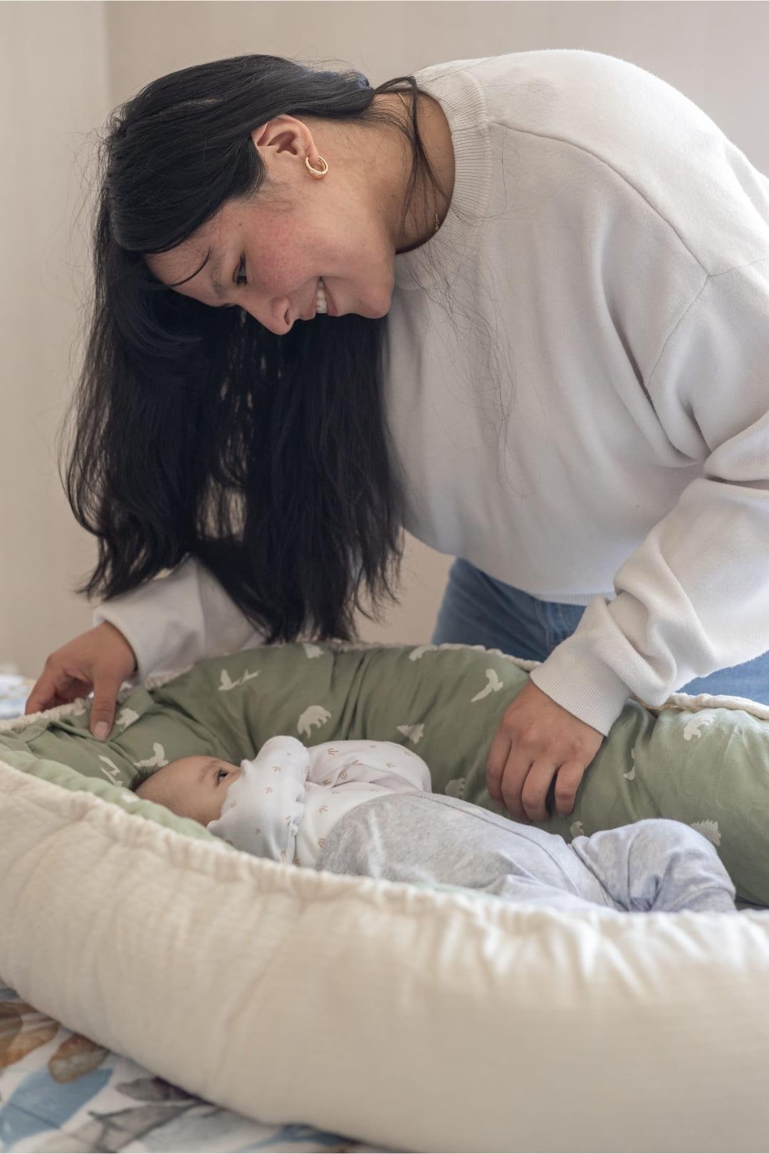 ¡Presentamos Nidobebé, el colecho que recrea el abrazo cálido del útero de mamá! En color verde olivo con crema, y confeccionado con material hipoalergénico, ofrece seguridad y confort desde el primer día.