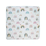 El material es suave y fácil de lavar, aunque por su grosor tarda un poco en secar. Es el diseño más infantil y colorido que tienen. Me encanto!!!